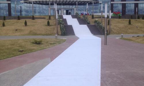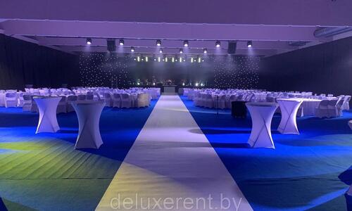 Размер ковровой дорожки может быть любой, и определяется индивидуально в зависимости от площадки и масштаба мероприятия.