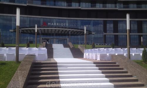 Прокат белой ковровой дорожки (аренда белой ковровой дорожки) со стойками или без.